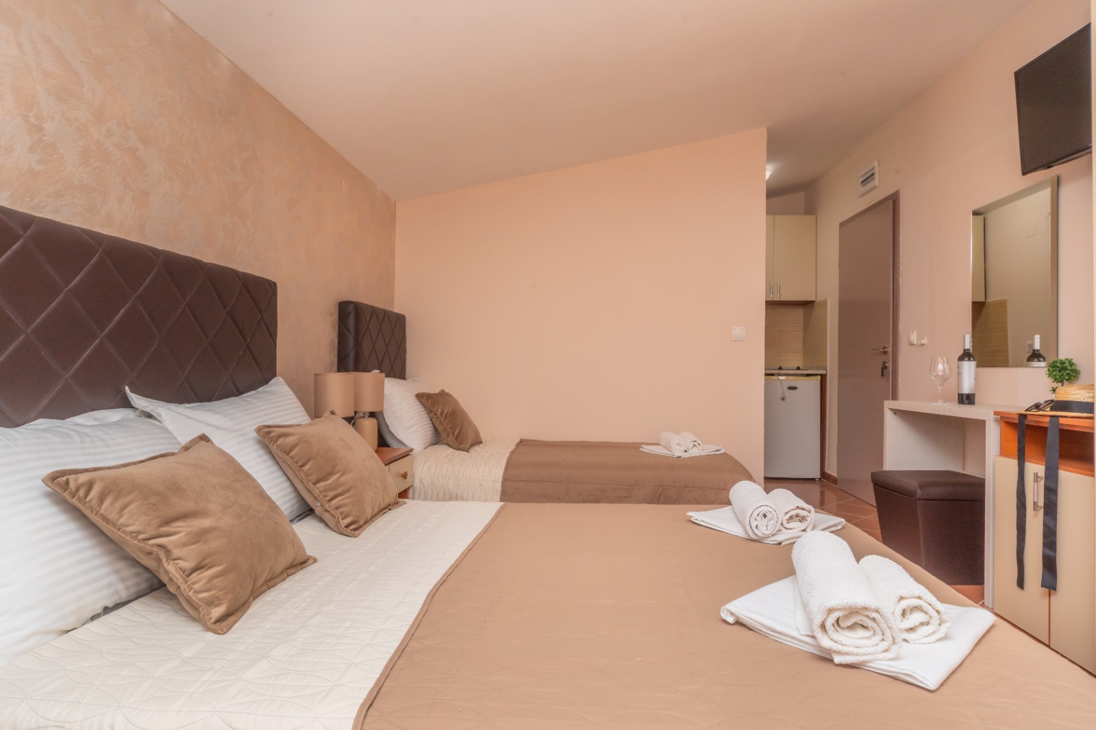 - Trokrevetne i četvorokrevetne smeštajne jedinice (sobe, studiji, apartmani i sl.) određuju se u skladu sa kategorizacijom i propisima domicilne zemlje.