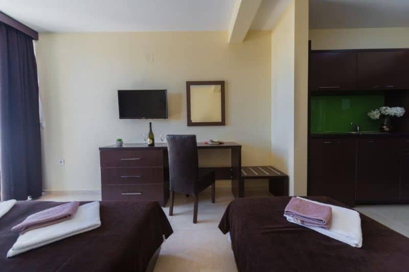 Usluga: PP – Polupansion ( doručak/večera – švedski sto) Smeštaj: Dvokrevetne, trokrevetne i četvorokrevetne sobe standard i lux, kao i studia. Svaka soba/studio ima kupatilo, SAT TV, frižider, balkon i klimu i većina ima pogled na more.